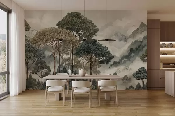 Тапете за зид Планински пејзаж са шумом у меким тоновима бр. w05410v1