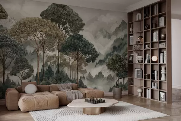 Тапете за зид Планински пејзаж са шумом у меким тоновима бр. w05410v1