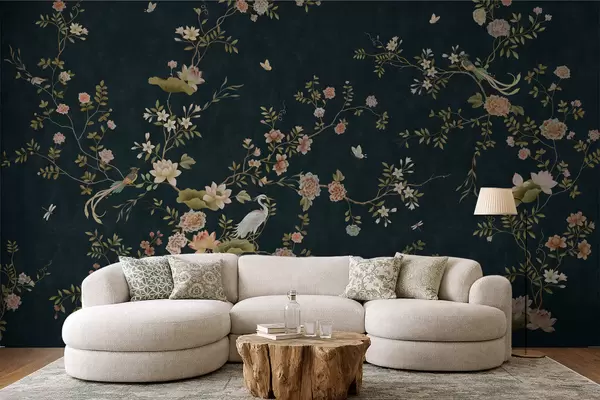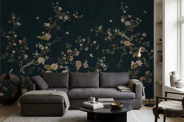 Тапете за зид Цветне гране са птицама на тамној позадини бр. w05416v3