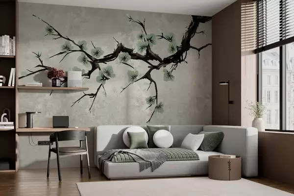 wall murals Грана са зеленим цветовима у мирним тоновима w05425v2