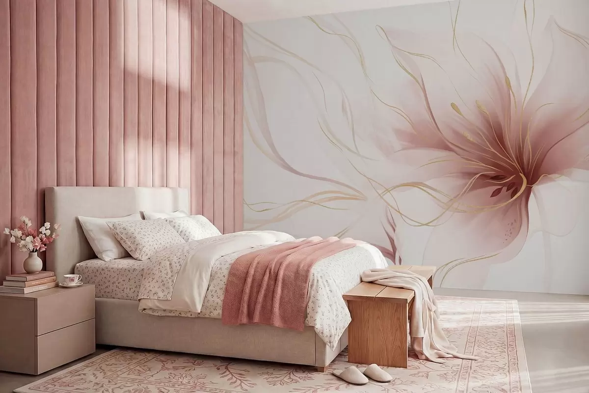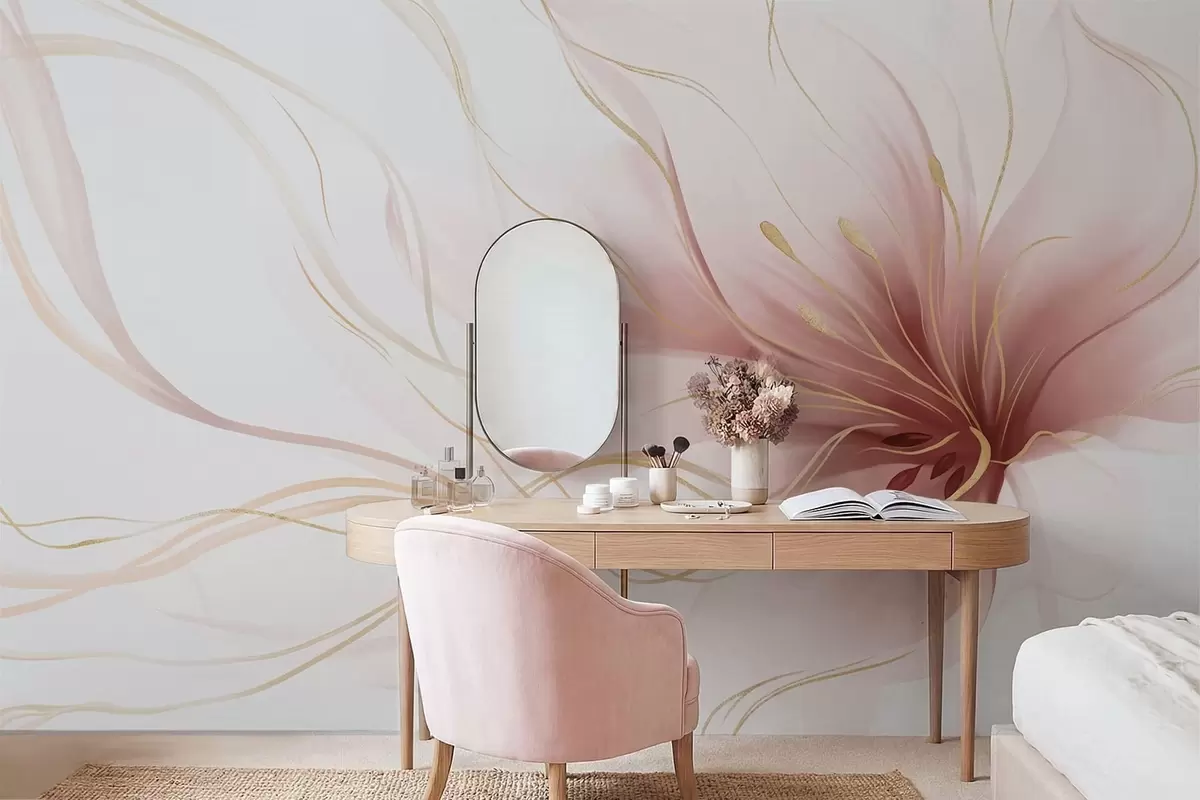 Тапете за зид Апстрактни ружичасти цвет са течним линијама у стилу флуидне уметности бр. w05428v1