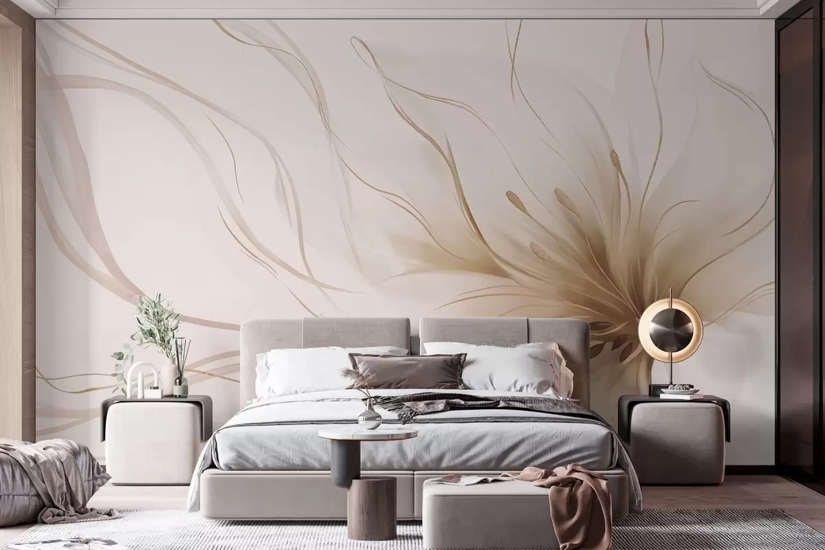 Тапете за зид Апстрактни беж цвет са течним линијама у стилу флуидне уметности бр. w05428v2