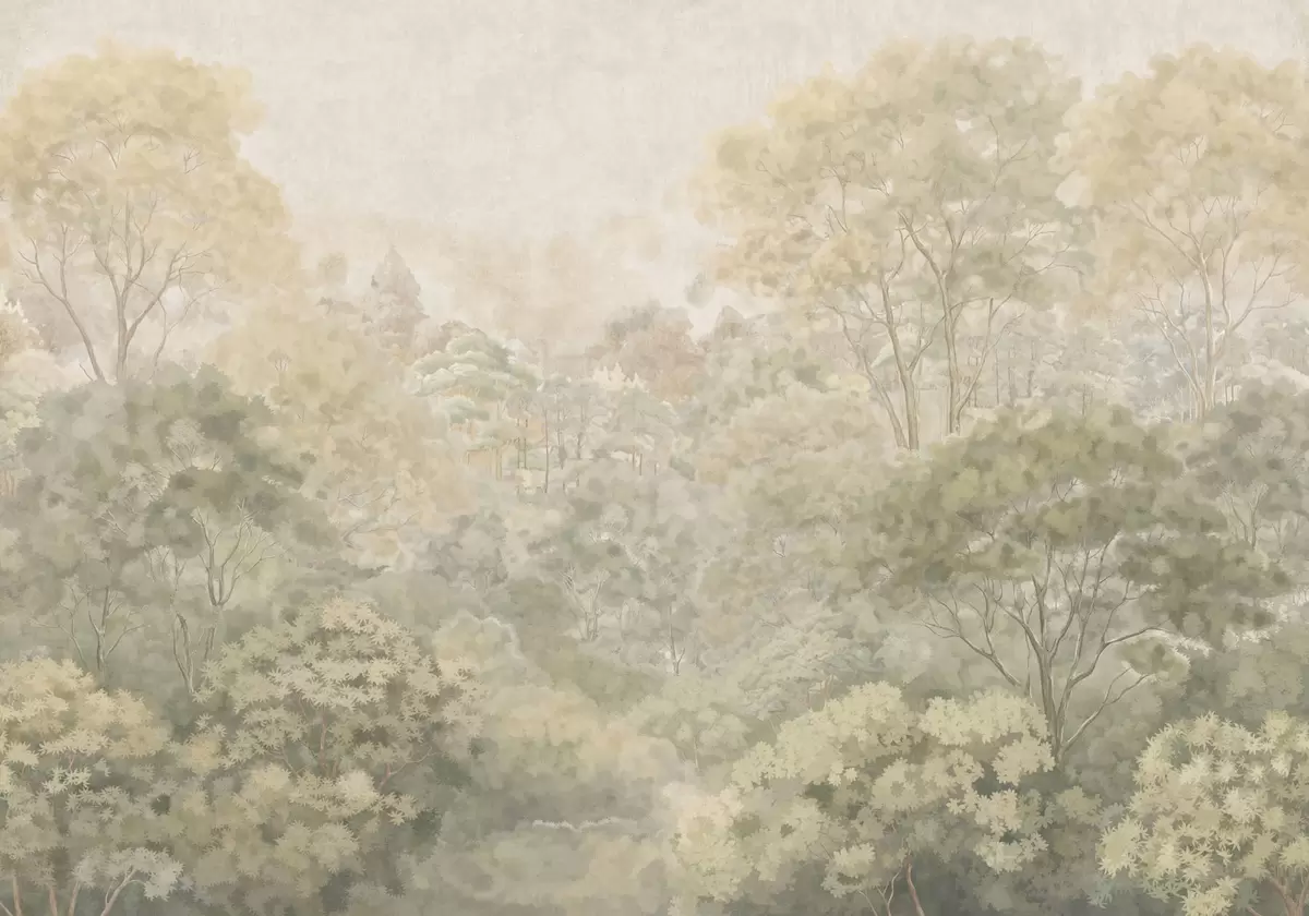 Тапете за зид Винтажни шумски пејзаж у пригушеним зеленим тоновима бр. w05433