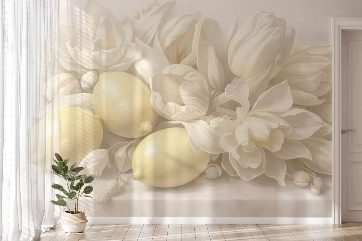 Тапете за зид Нежни цветни букет са лимунима бр. w05449