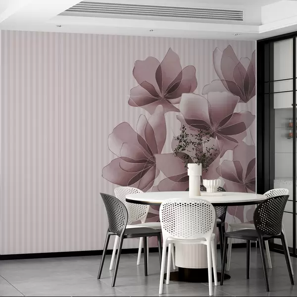 Тапете за зид нежно розе цвеће на пругастој позадини бр. w08040v1
