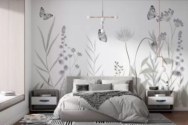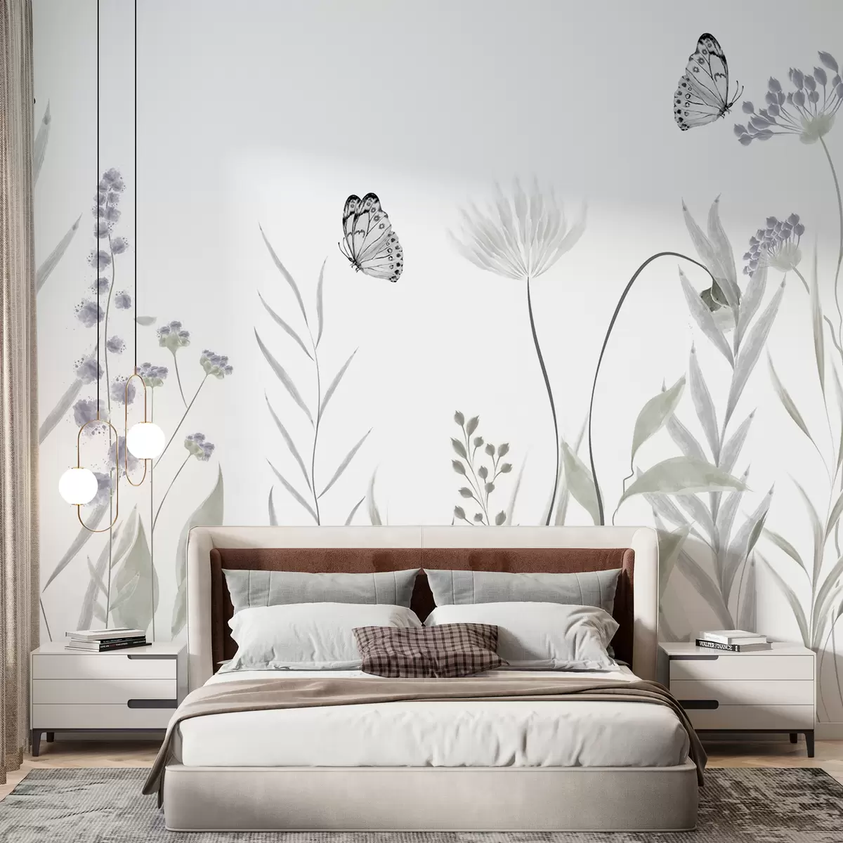 Тапете за зид Дивље цвеће и лептири бр. w08052