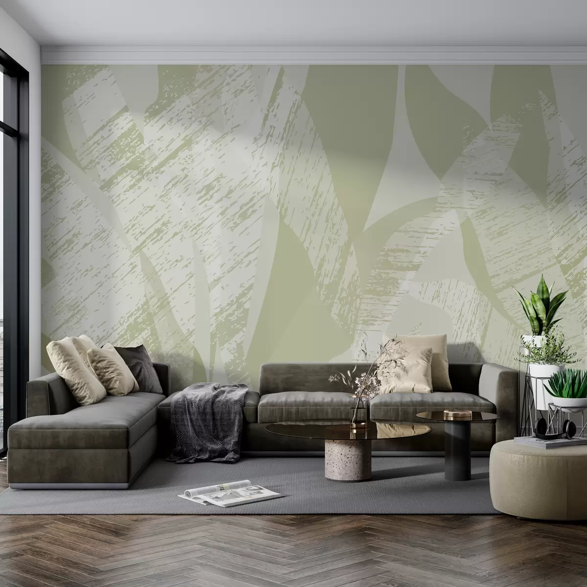 Тапете за зид Грунге листови у зеленој боји бр. w08178v2