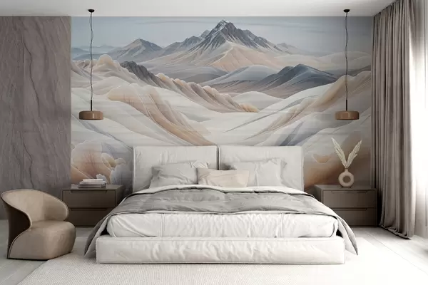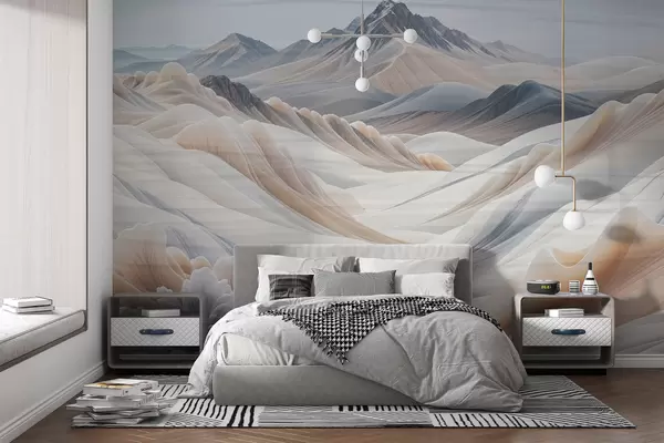 Тапете за зид Планински пејзажни принт са снежним врховима у нијансама беж минималистичке естетике бр. w08191