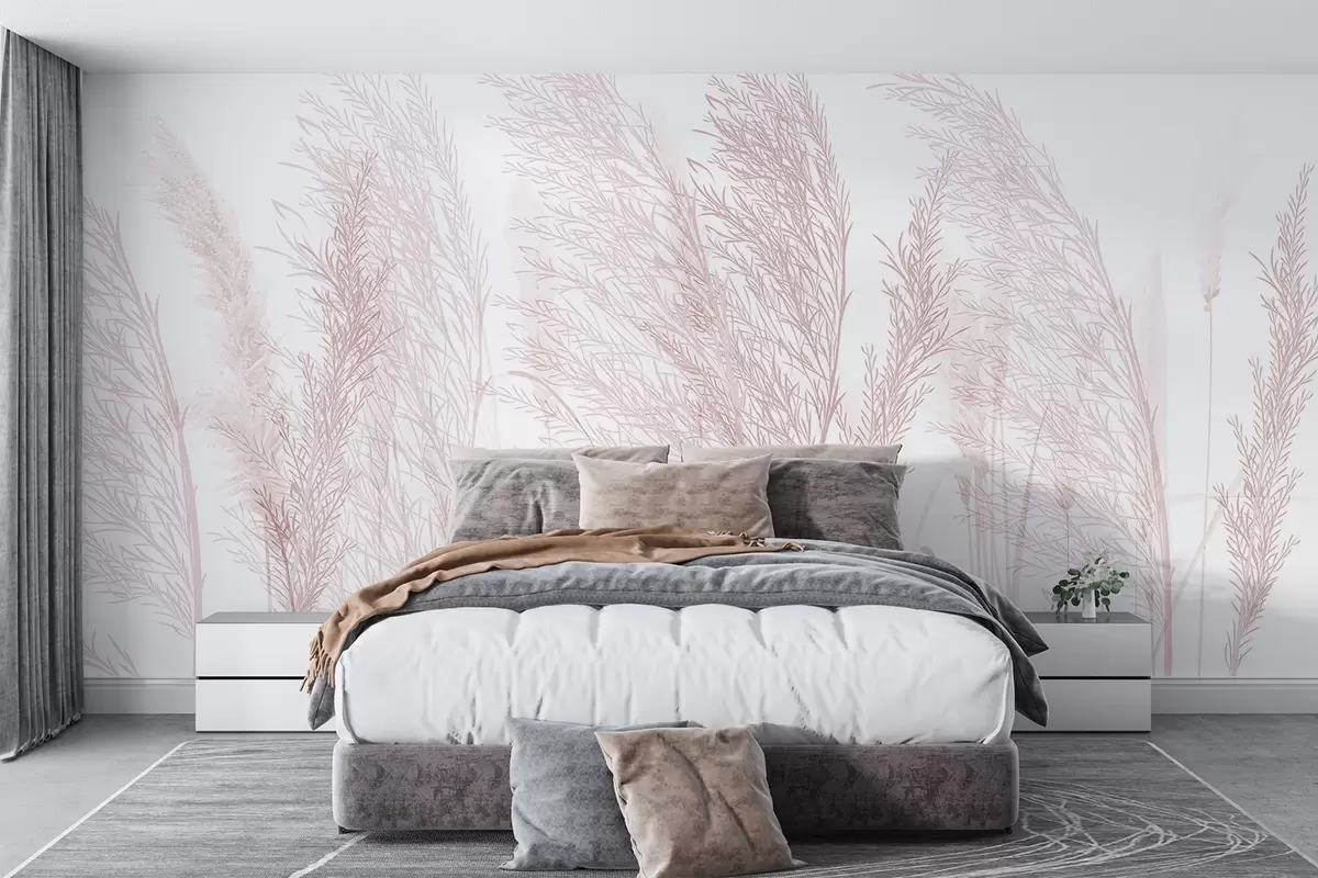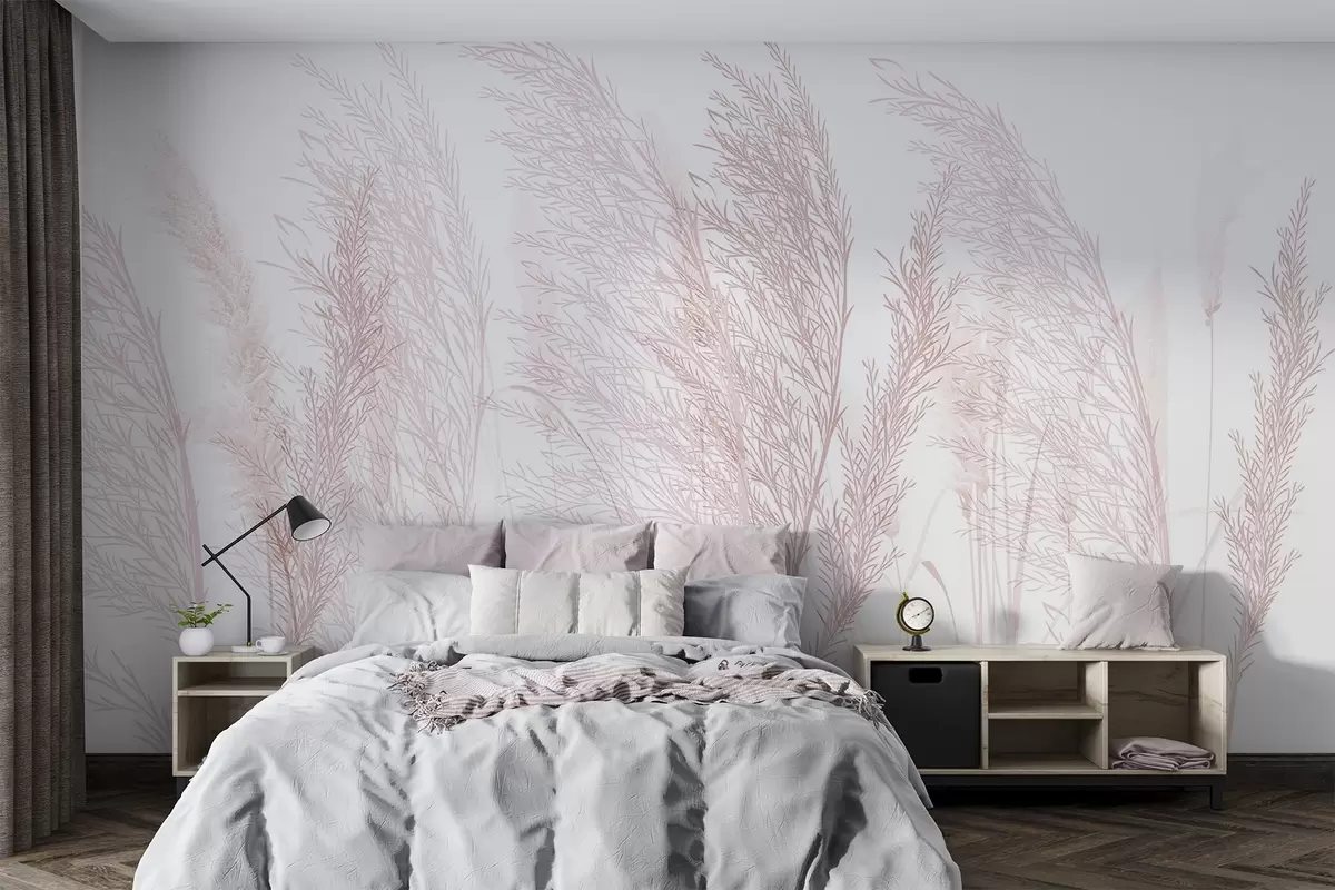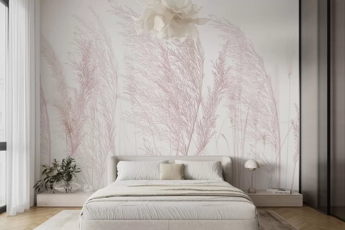 Тапете за зид Деликатна пастелно ружичаста мека пампас трава на белој позадини минималистичке композиције бр. w08351