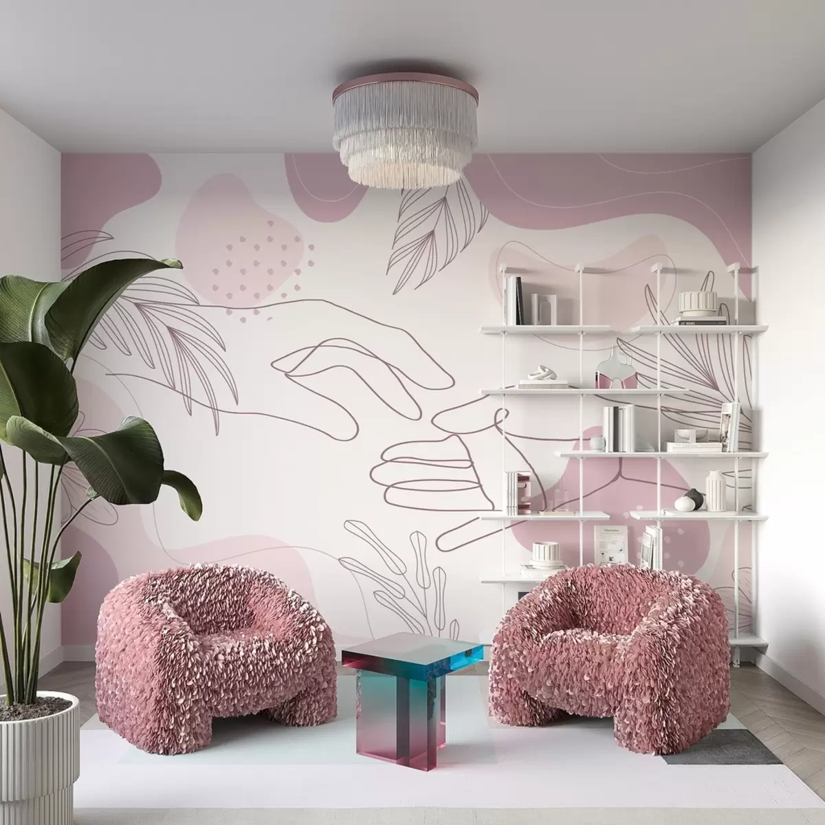 Тапете за зид Вектор, линеарне руке, мрље, ружичаста боја бр. w08353v1