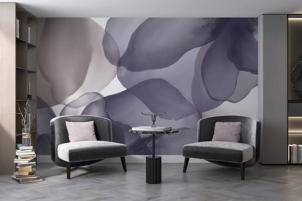 Тапете за зид Апстрактни тамнољубичасти и беж цветни облици, меке и органске форме са осећајем покрета и флуидности бр. w08381