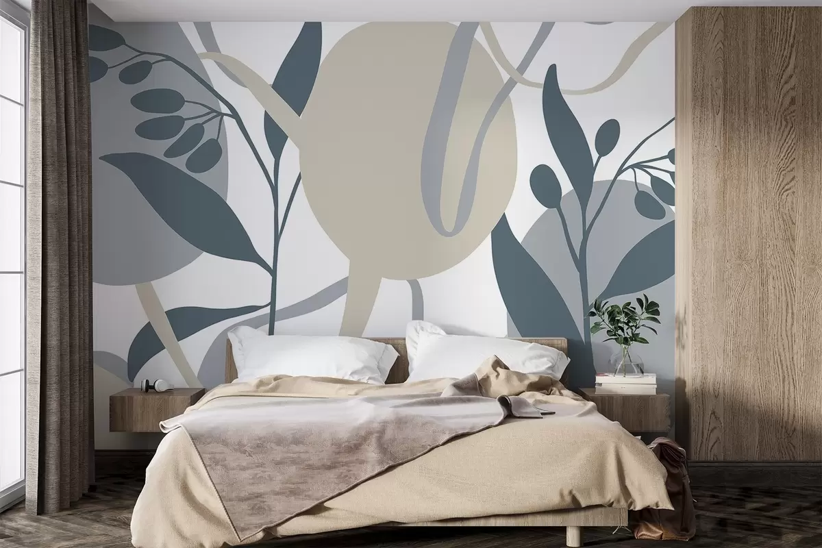 Тапете за зид Минималистички апстрактни цветни принт са беж и сивим облицима на белој позадини бр. w08400