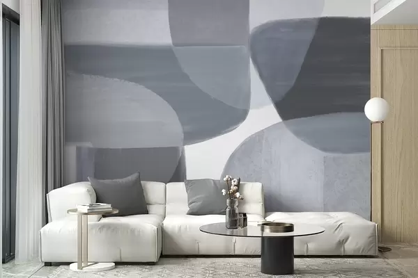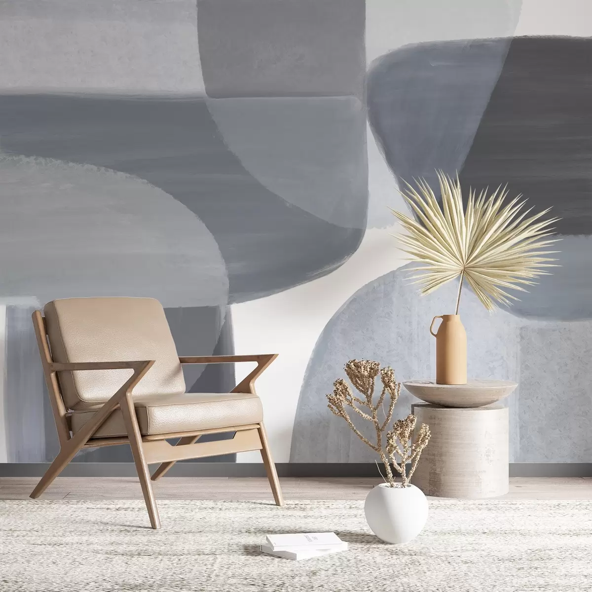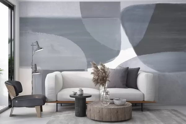 Тапете за зид Једнобојна апстрактна штампа са преклапајућим минималистичким облицима и облицима у нијансама сиве и плаве бр. w08410