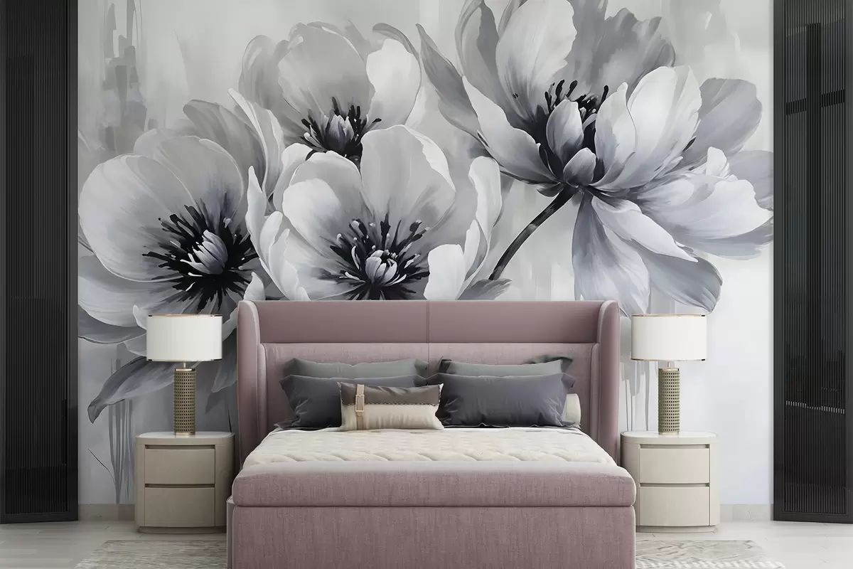 Тапете за зид Једнобојни цветови тулипана са меким, замућеним латицама на светлој позадини бр. w08418