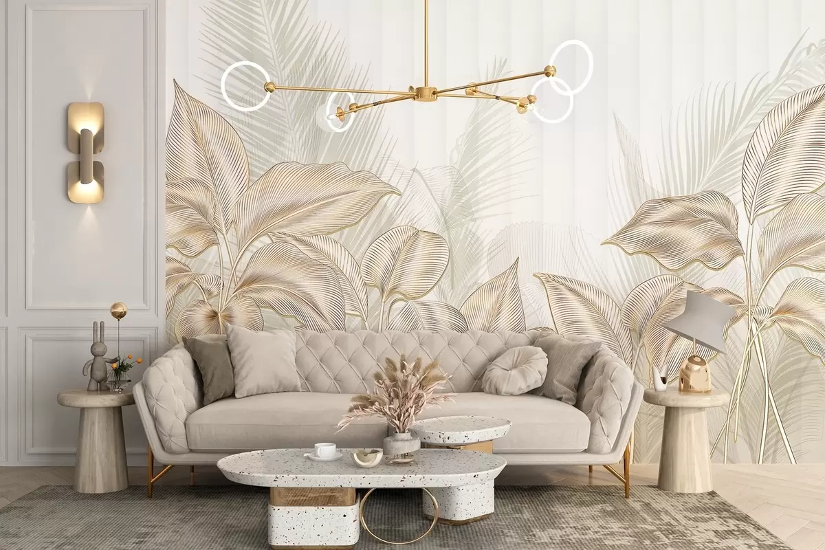 Тапете за зид Елегантно бело и беж палмино лишће на светлој, текстурираној позадини бр. w08434