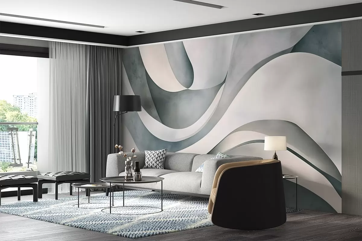 Тапете за зид Бели, плави и сиви закривљени облици и форме стварају апстрактну текстуру модерног минималистичког отиска бр. w08439v1