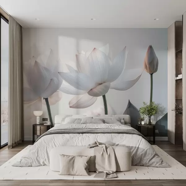 Тапете за зид Нежни лотосови цветови са латицама и листовима бр. w08488