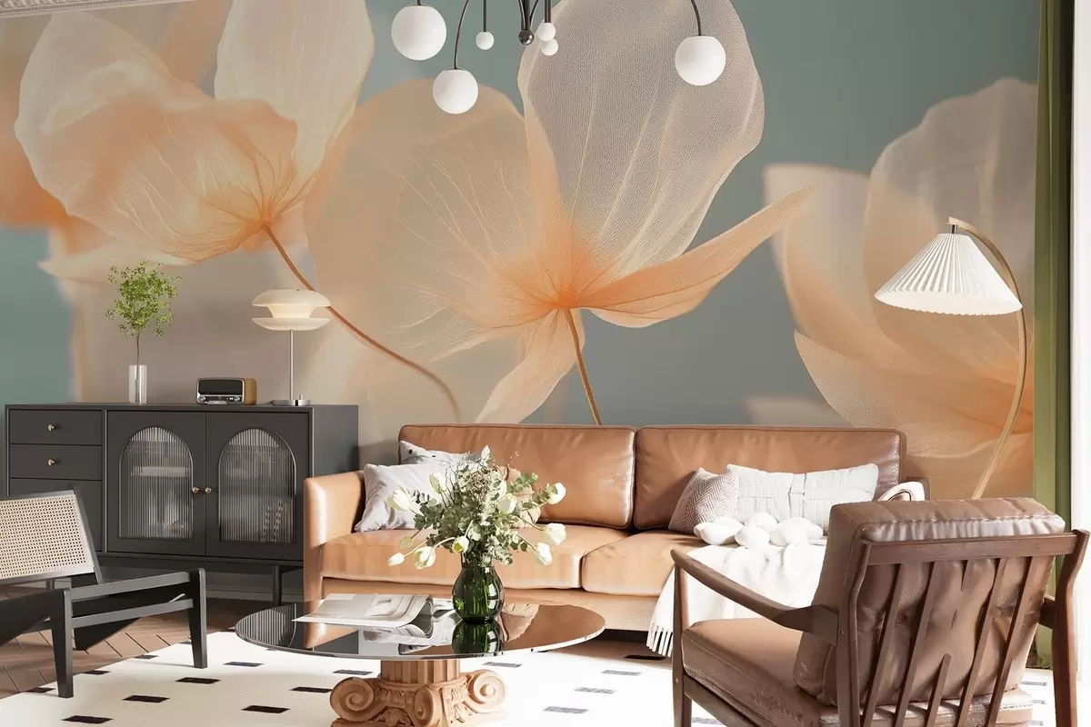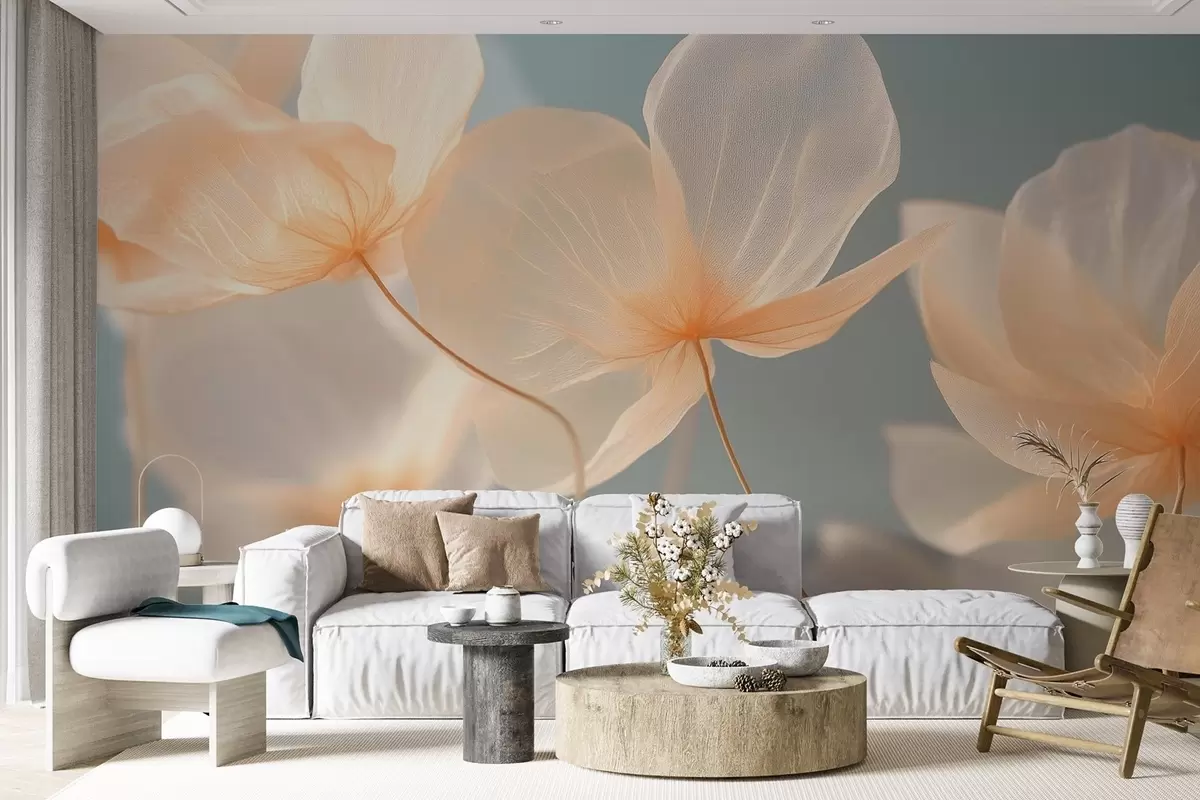 Тапете за зид Латице лотоса, деликатна композиција са плавом позадином бр. w08500