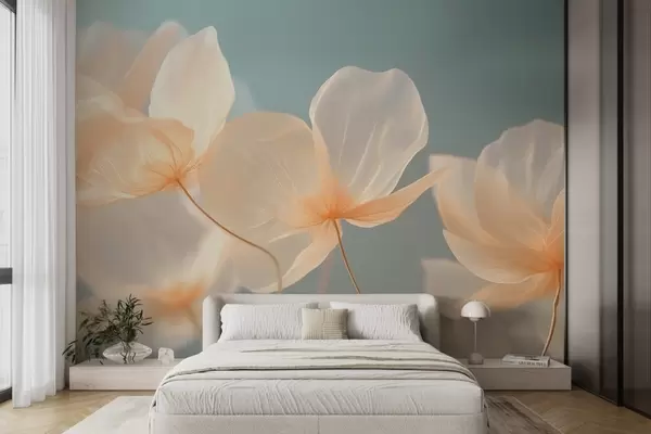 Тапете за зид Латице лотоса, деликатна композиција са плавом позадином бр. w08500