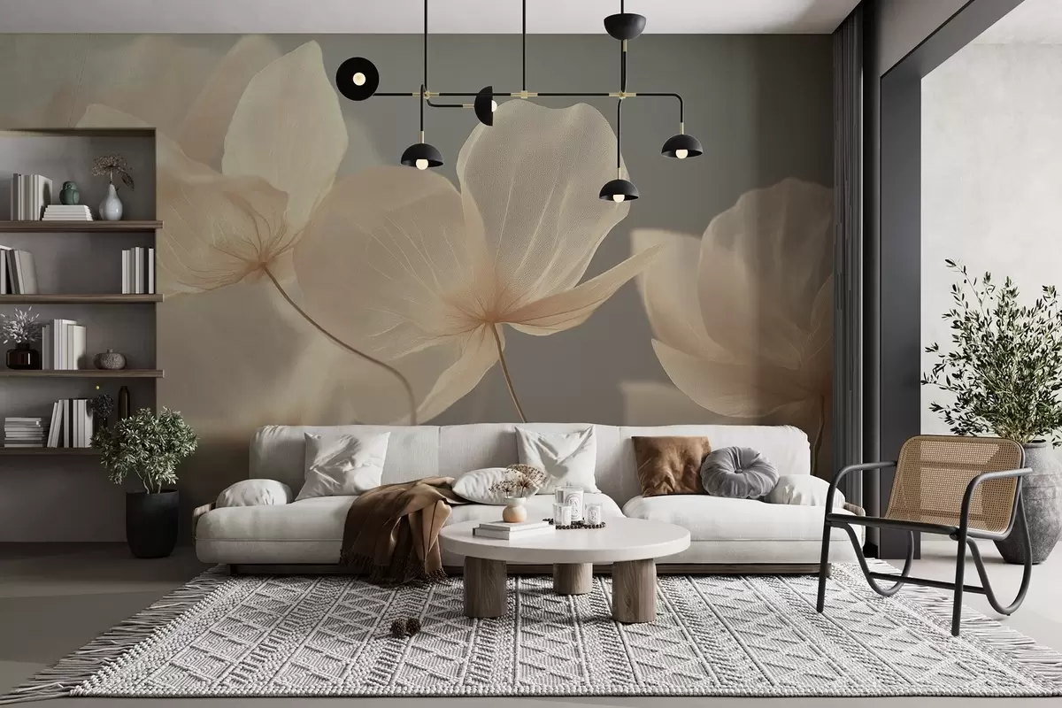 Тапете за зид Латице лотоса, деликатна композиција са сивом позадином бр. w08500v2