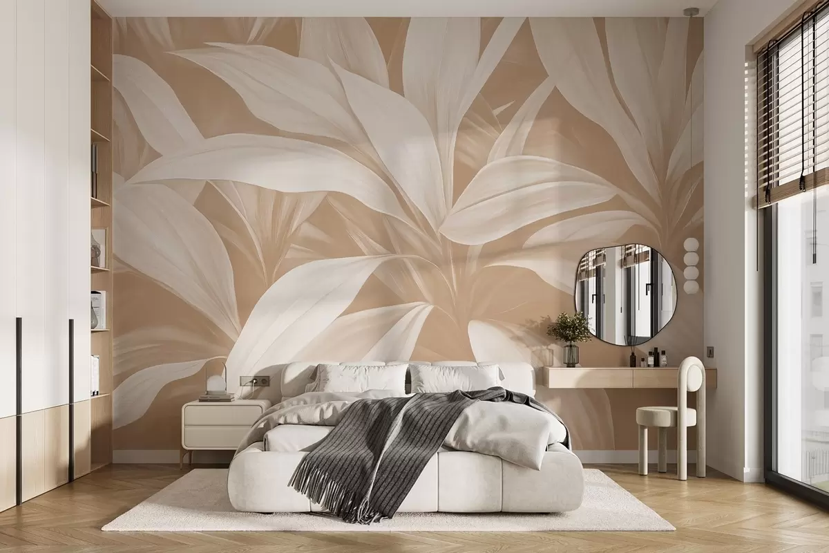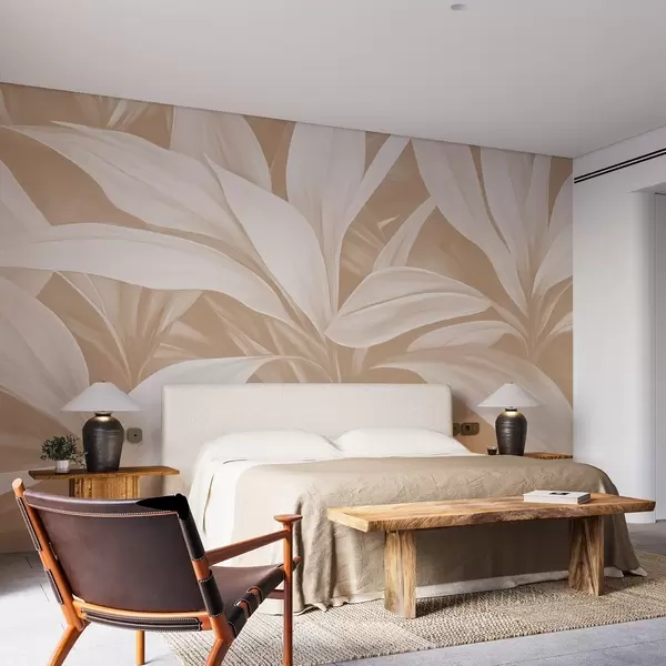 Тапете за зид Велики листови биљке нежно розе боје бр. w08501
