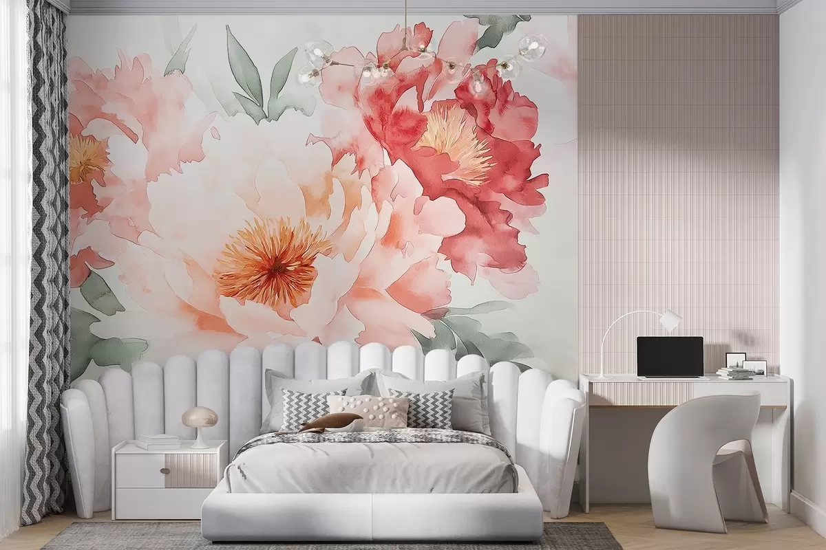 Тапете за зид Велики деликатни акварел божури бр. w08571