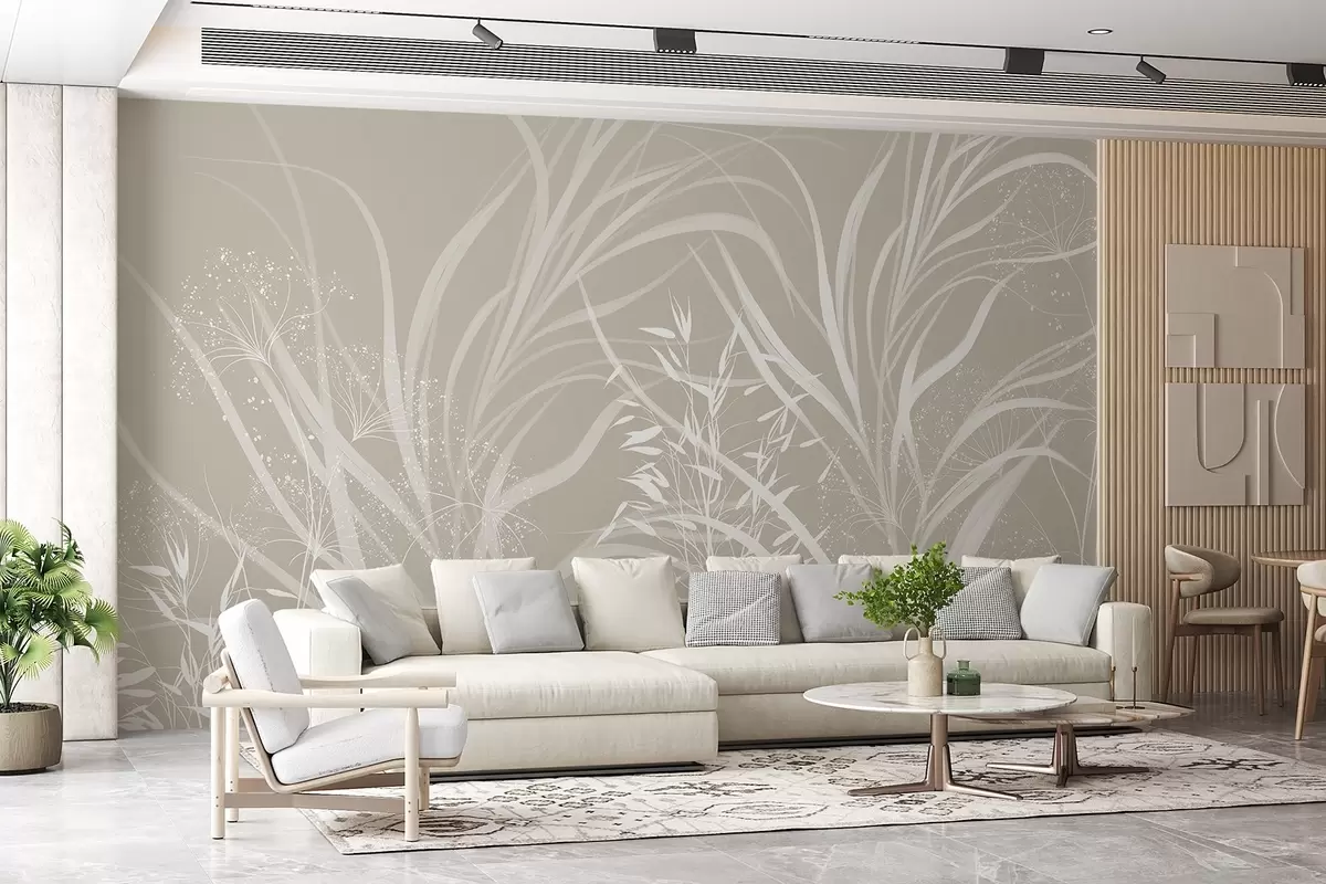 Тапете за зид Деликатан модеран минималистички бели цветни принт на светлој пастелно-беж позадини бр. w08583