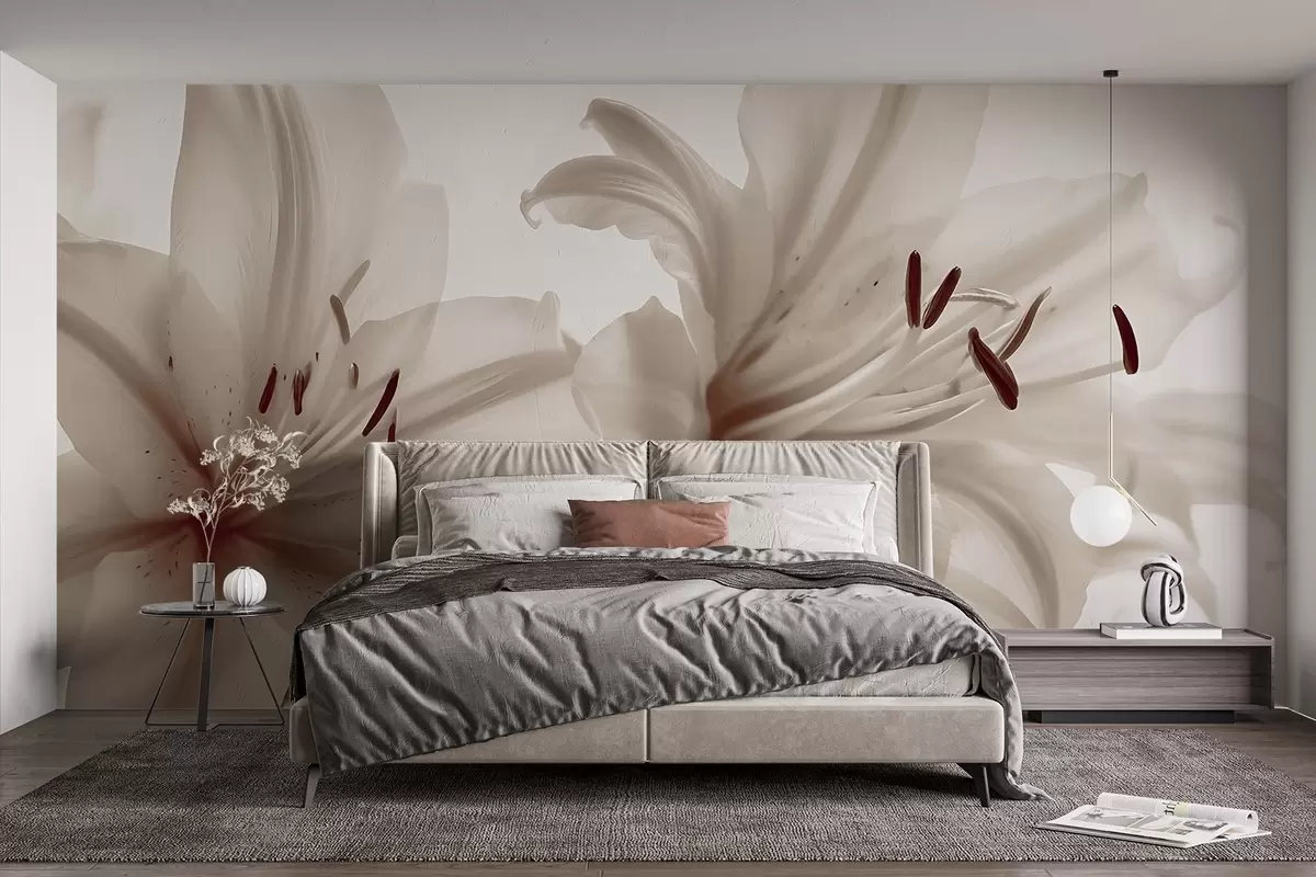 Тапете за зид Меки фокус крупни план беж минималистичких цветова љиљана на светлој позадини бр. w08586v1