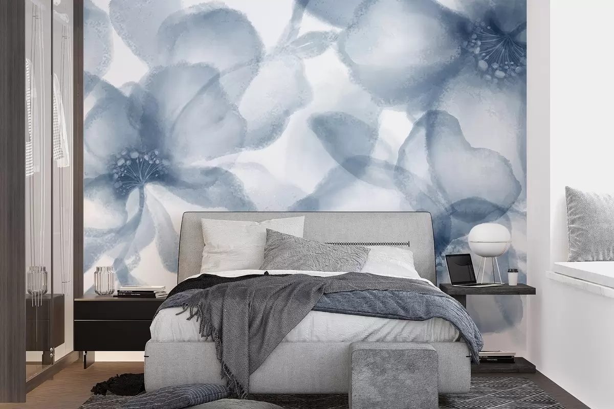 Тапете за зид Меко, замућено апстрактно плаво цвеће ствара спокојан и умирујући цветни принт бр. w08607