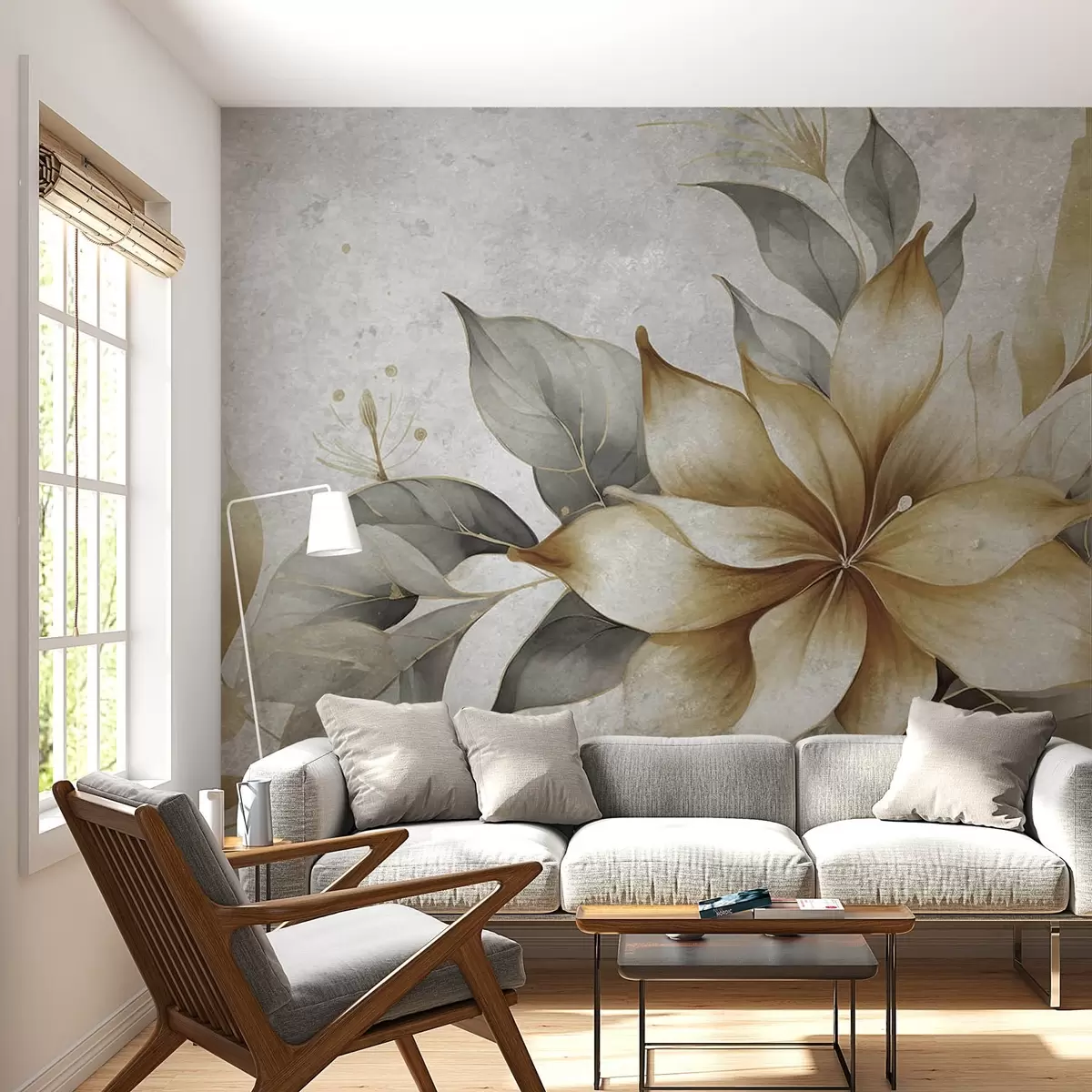 Тапете за зид Грана цвећа на имитацији бетонске подлоге бр. w08623