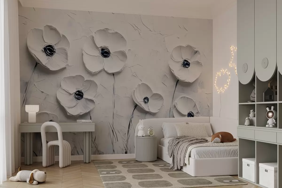 Тапете за зид Елегантно сиво цвеће са имитацијом потеза четкице бр. w08632