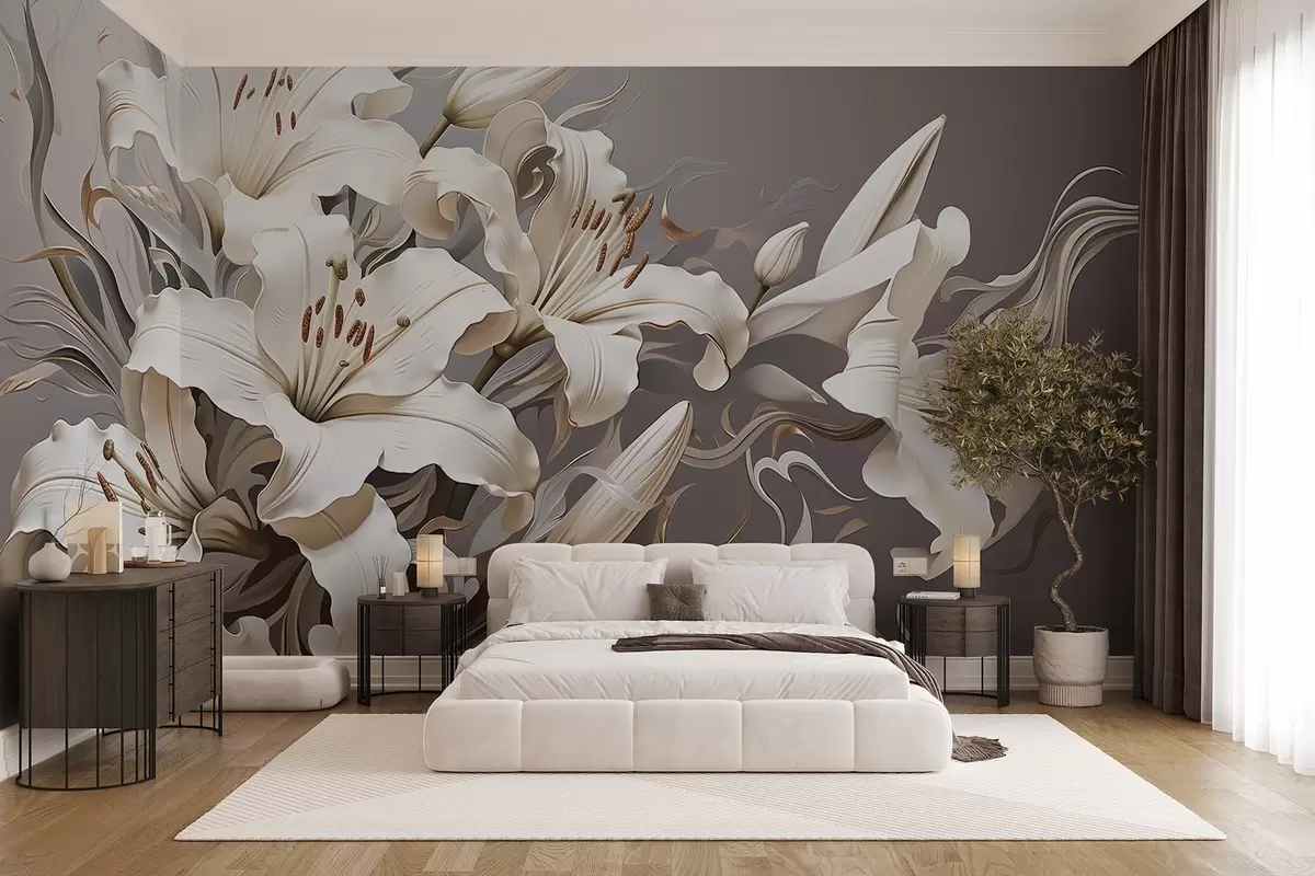 Тапете за зид Софистицирани бели љиљани у пастелним тоновима бр. w08633v1