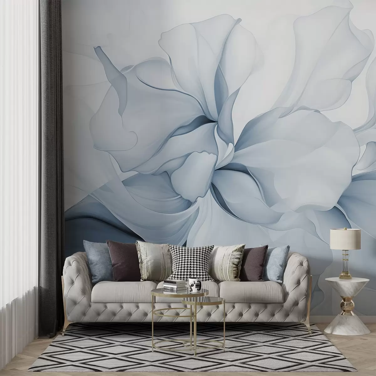 Тапете за зид Тече апстрактне цветне латице прозирних и слојевитих облика у пастелним бојама, у плавим нијансама бр. w08701v2