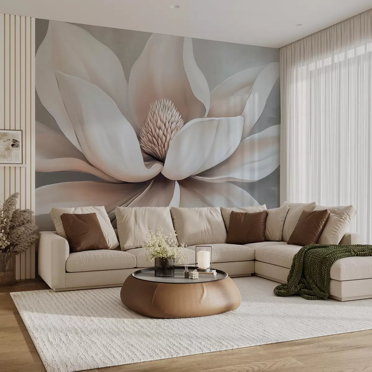 Тапете за зид Елегантан цвет магнолије са дугим, глатким латицама на меко сивој позадини бр. w08705