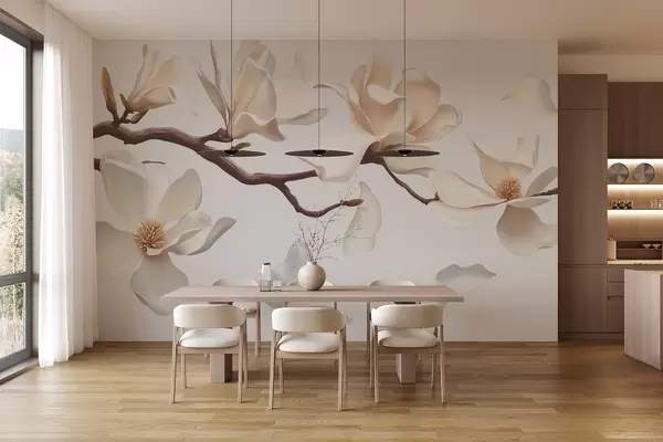 Тапете за зид Грана дрвета са нежним цветовима магнолије и падајућим латицама бр. w08706