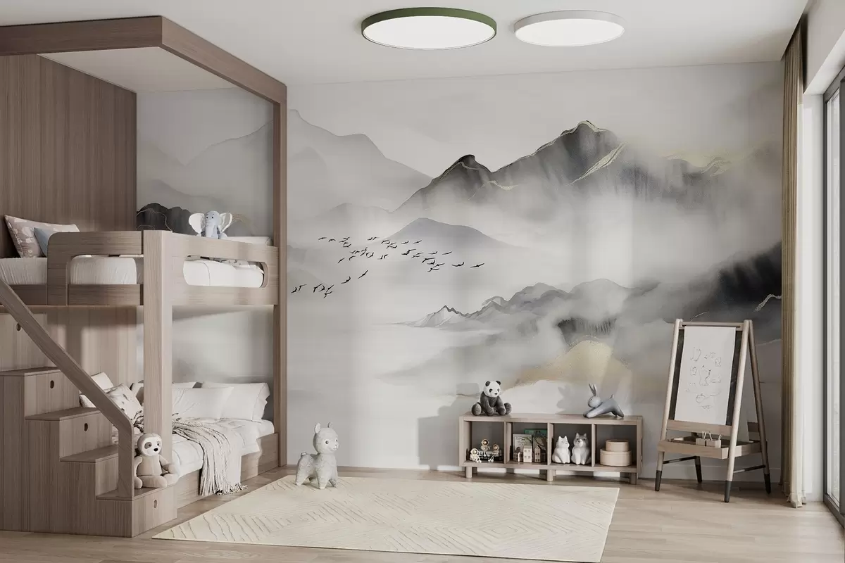 Тапете за зид Деликатне планине у магли у стилу акварела бр. w08719