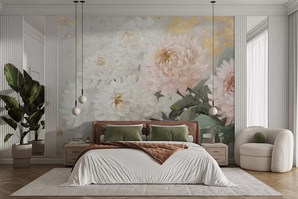 Тапете за зид Нежне хризантеме у акрилном стилу бр. w08766