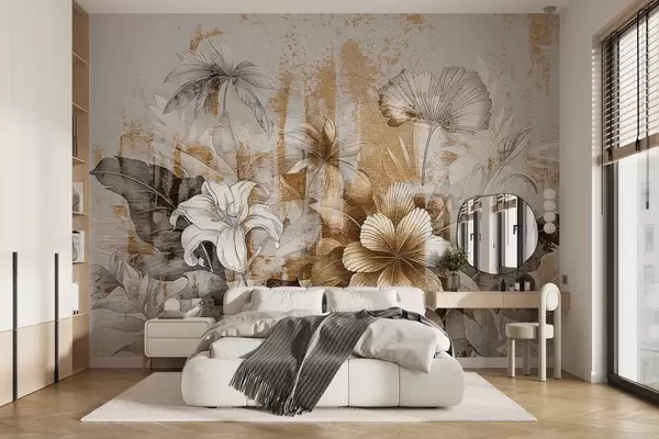 Тапете за зид Винтаге дизајн са егзотичним цвећем и биљкама бр. w08767
