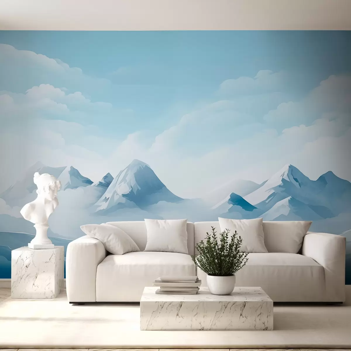 Тапете за зид Минималистички плави облаци и планине, ледено време бр. w08811