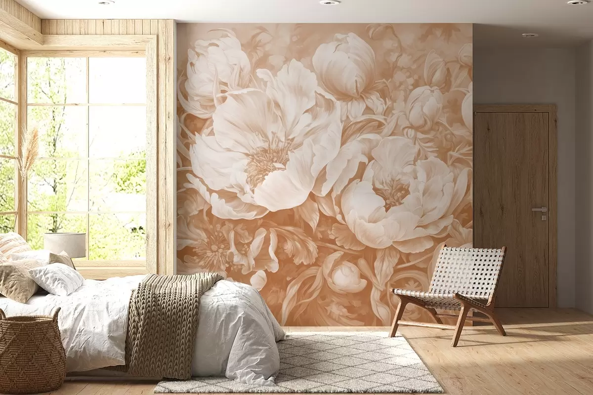 Тапете за зид Лале и божури, цветна композиција у стилу беж уљаног потеза бр. w08817v1