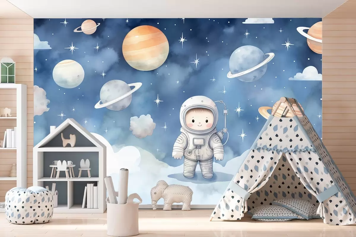 Тапете за зид Свемир и планете, астронаут, имитација акварела бр. w08843