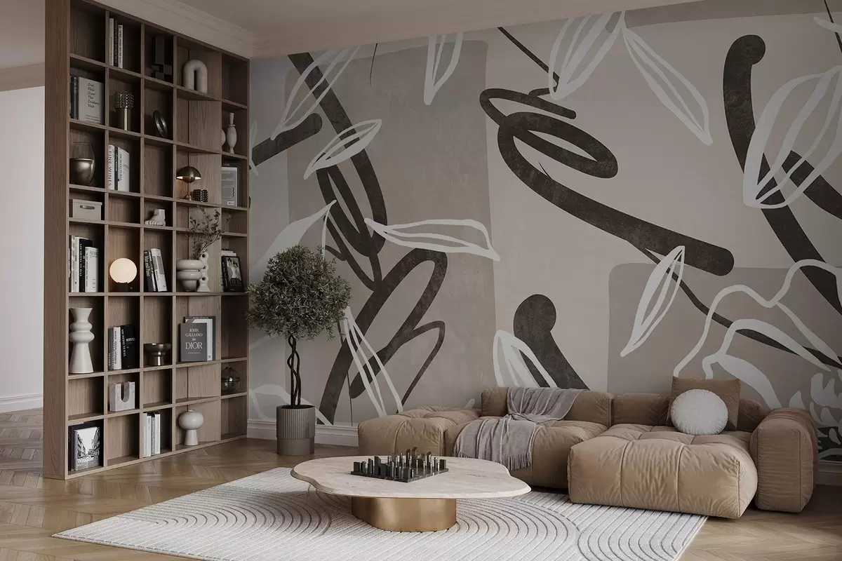 Тапете за зид Модеран и минималистички дизајн са апстрактном текстуром са цветним елементима у неутралној беж палети боја бр. w08888