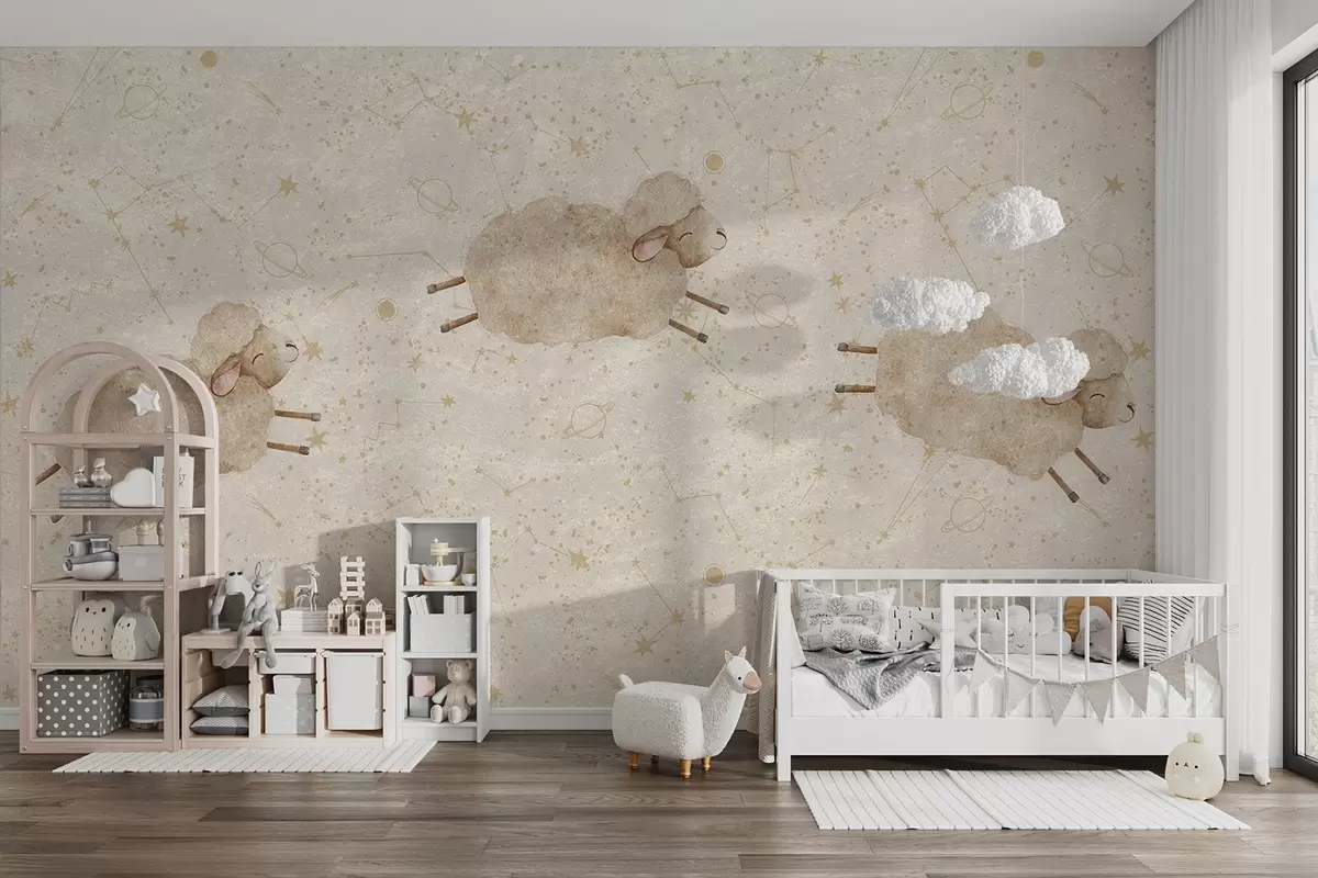 Тапете за зид Овце које скачу на звезданој позадини бр. w08930