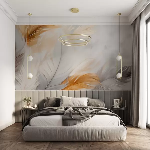 Тапете за зид Сиво и жуто перје на сивој позадини бр. w08937