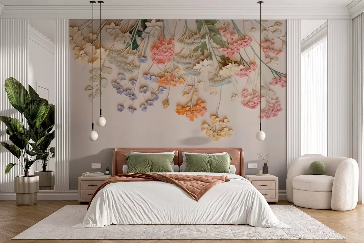 Тапете за зид Висеће обимно дивље цвеће на беж позадини бр. w08940