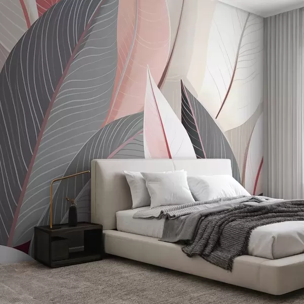 Тапете за зид Крупни план листова у сивим и ружичастим тоновима бр. w08944v1