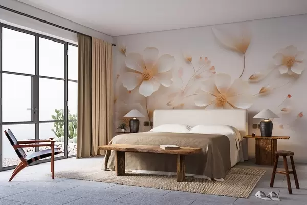 Тапете за зид Светло беж нежно дивље цвеће бр. w08953