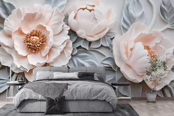 Тапете за зид Величанствени велики божури са листовима у фреско стилу бр. w08954