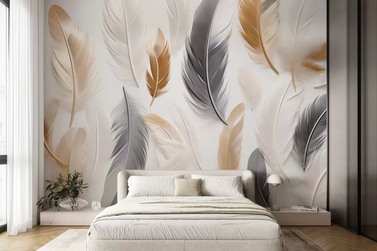 Тапете за зид Беж-сиво перје у меким, мирним тоновима бр. w08955