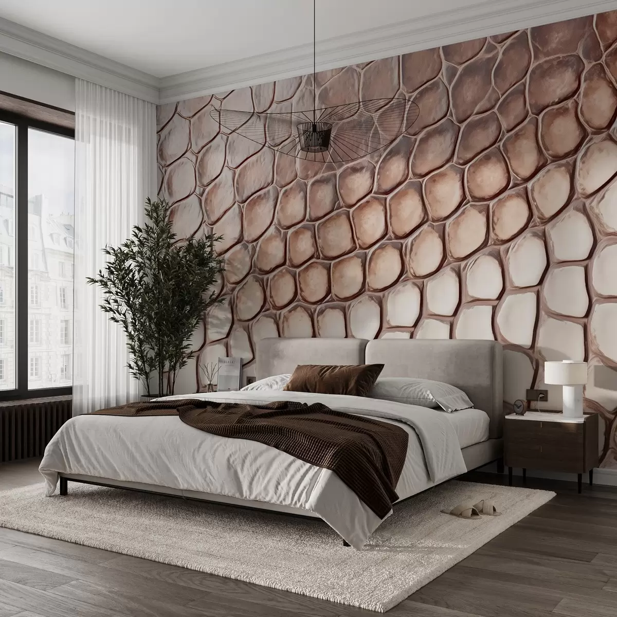 Тапете за зид Бело-браон кожа гмизаваца, шара бр. w08957
